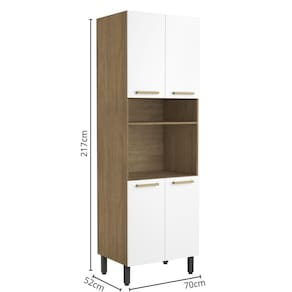 Condição do Item: Novo | Tipo do Móvel: Armário Paneleiro | Material: Madeira | Linha: cozinha forno microondas | Peso Móvel Montado: 62,19 | Altura Móvel Montado: 217 | Largura Móvel Montado: 70 | Profundidade Móvel Montado: 52 | Acabamento: Finish Foil (FF) | Tipo dos Puxadores: Haste em alumínio e ponteira em ABS | Tipo das Dobradiças: Metálica | Requer Montagem?: Sim | batteries_required: Não | Quantidade de Portas: 4 | bullet_point0: Fabricado em MDP: portas e estrutura 15mm, tampo de 25mm. | bullet_point1: Dobradiças Slow Motion. | bullet_point2: Detalhes com borda em PVC. | external_testing_certification: Não se aplica | Quantidade de Pés: 4 | included_components: Prateleiras | is_assembly_required: Sim | is_fragile: Não | Recomendações de Limpeza: Limpar somente com pano úmido, não usar produtos abrasivos. | item_depth_width_height: 52 x 217 x 70 | manufacturer: Bertolini | model_number: 8112 | number_of_items: 1 | part_number: 8112 | recommended_uses_for_product: Louça | special_feature: Pés ajustáveis | Quantidade de Volumes: 2 | Inclui Manual de Montagem: Sim Cor: Branco/Carvalho