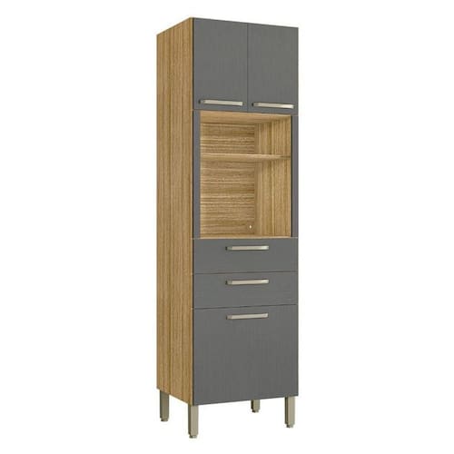 Armário Paneleiro Ametista Micro-ondas 2 Gavetas Freijó Gris - Kits Paraná