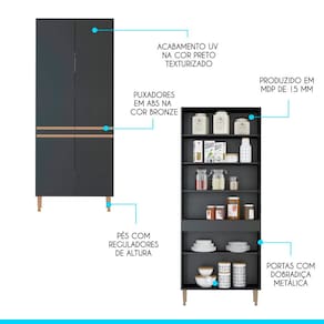 O Arm?rio Paneleiro Vertical para Cozinha Sabrina foi desenvolvido para atender todas as suas necessidades do dia a dia com um design moderno, cheio de personalidade, funcionalidade e versatilidade. A cozinha preta ? uma tend?ncia e foi arquitetada para facilitar a sua rotina di?ria mantendo seu ambiente organizado e aconchegante. Possui quatro portas com prateleiras interna. A eleg?ncia fica por conta dos puxadores em perfil e os p?s na cor bronze dando um toque ?nico de sofistica??o. Produzido com materiais de excelente qualidade, garantindo a durabilidade e vida ?til. O melhor em m?veis no design atual aliando conforto, qualidade e ?timos pre?os, s? na Menu M?veis!
