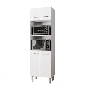 Características: Estrutura em MDP Acabamento em pintura UV 04 Portas com Dobradiças Metálicas Puxadores em Plástico Cromados Altura dos Pés 16 cm Pés com Regulagem Prateleiras e Amplo Espaço Interno Espaço para Forno e Microondas