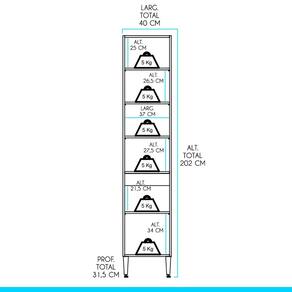 INFORMAÇÕES TÉCNICAS: Altura: 202 cm Largura: 40 cm Profundidade: 31,5 cm Peso: 26,7 kg