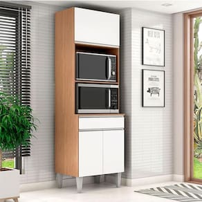 Está montando sua cozinha? Apresentamos para você este belo armário torre quente da linha Andréia. Possuindo três portas, sendo uma basculante, além de uma gaveta com corrediças metálicas, proporcionando um deslizamento suave e seguro. O destaque fica por conta dos dois nichos, com espaço para acomodar seu microondas e outros eletros de forma prática e organizada. Com puxadores e pés em PVC, alia robustez com facilidade na hora da limpeza. Fabricado pela AJL, é desenvolvido em 100% MDP, será uma excelente opção para complementar sua cozinha com estilo e funcionalidade. Aproveite e garanta já o seu!
