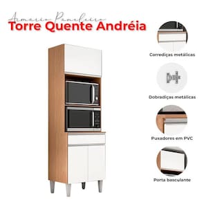 Armário Paneleiro Torre Quente 2 Fornos Ambiente Andréia Amêndoa Branco - AJL