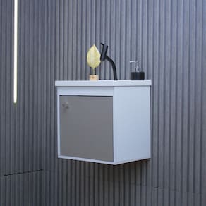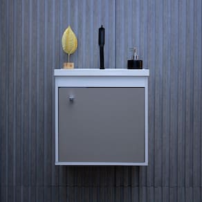 Gabinete banheiro em mdf com pia cuba - veneto Conjunto gabinete veneto riverzza O gabinete suspenso para banheiro é desenvolvido com estrutura em mdf e a cuba em bmc, garantindo mais durabilidade e resistência ao produto. Medida do gabinete: l x a x c 40cm x 41cm x 31,5cm Peso gabinete: 5,6 kg Peso suportado: 10 kg Medida da cuba: l x a x c 40cm x 2,5cm x 31,5cm Furo da torneira: 2,7cm Furo do ralo/válvula: 3,2cm Medida da embalagem produto desmontado : l x a x c 38,3cm x 21,2cm x 46cm Peso da embalagem: 6,15 kg Itens inclusos: 1 gabinete de banheiro, 1 pia e 1 kit de montagem. Não acompanha espelho. Acompanha cuba: sim cor: branca Material da cuba: bmc Estilo: moderno Furação para cuba e torneira: sim Material da porta: mdf Material do puxador da porta: plástico Material principal: mdf Possui espelho: não Possui gabinete: sim Possui gaveta: não Possui iluminação: não Possui pés: não Possui portas: 01 Possui prateleiras: não Possui rodízio: não Kit montagem: sim apenas para montagem, não acompanha parafusos para fixação Necessita montagem: sim Complexidade da montagem: baixa pode ser montado por uma pessoa sozinha Origem do produto: nacional do fornecedor: 03 meses Recomendações de uso, manutenção e limpeza: limpar com pano levemente umedecido Tipo de dobradiça/corrediça da porta: metálica Tipo de porta: bater Tipo de puxador da porta: externo Marca: Não Informado