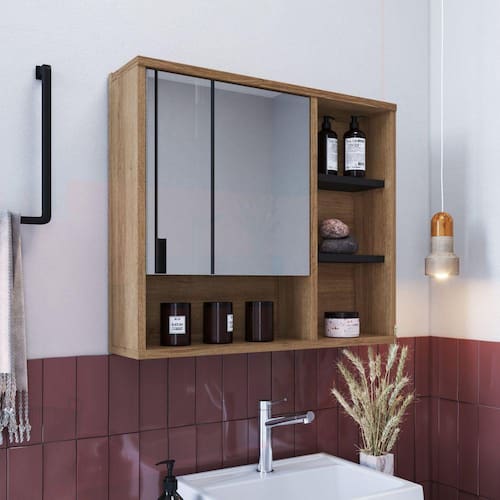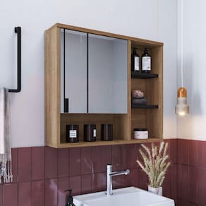 Aéreo lavabo linha Versato com excelente espaço para organização dos itens de uso diário. Praticidade, conforto e design moderno para o banheiro. Pensando em custo benefício, mas sem perder qualidade, estes móveis são produzidos 100% em MDP. Acabamento da Porta: Finish Foil Acabamento da Prateleira: Finish Foil Acompanha Lâmpada: Altura do Espelho: 31.5 Altura do Espelho 01: cm Altura do Espelho 02: Altura do Espelho 03: Altura do Espelho 04: Altura do Espelho 05: Altura do Espelho 06: Ambiente Principal: Banheiro Complexidade da Montagem: Média: pode ser montado por mais de uma pessoa e/ou necessite de maior conhecimento para montagem Composição: 100% MDP Cor: Marrom/Preto Cor do Produto: Marrom/Preto Cor Flex: Não Cor Interna: Bege Escala de Brilho: Fosco Espessura do Espelho: 3 Espessura do Material da Estrutura: 15 Fita Integrada: Não Formato do Espelho: Retangular Informações Complementares: Itens Inclusos: 1 Espelheira, Kit Ferragens e Manual de Montagem Largura do Espelho: 42 Largura do Espelho 01: cm Largura do Espelho 02: Largura do Espelho 03: Largura do Espelho 04: Largura do Espelho 05: Largura do Espelho 06: Linha ou Coleção: Armário Banheiro Manual de Especificação Técnica: Manual de Montagem e Instalação: https://cdn2.madeiramadeira.com.br/atributo/nova-mobile/1134888-7898463865532-4-lva06-manual-de-montagem.pdf Material da Porta: MDP Material da Prateleira: MDP Material do Puxador da Porta: Material Principal: MDP Montagem Flex: Não Necessita Montagem: Sim Origem do Produto: Nacional Peso: 11.56 Peso Máximo por Prateleira: 1 Possui Espelho: 01 Possui iluminação: Não Possui Portas: 01 Possui Prateleiras: 04 Possui Toalheiro: Não Possui Tomadas: Não Recomendações de Uso, Manutenção e Limpeza: Para a limpeza do móvel utilizar uma flanela seca. Sistema de Montagem: Parafusos e cavilhas Tipo de Dobradiça/Corrediça da Porta: Metálica Tipo de Fixação do Espelho: Fita Dupla Face Tipo de Lâmpada: Tipo de Madeira Maciça: Tipo de Madeira Maciça da Porta: Tipo de Madeira Maciça da Prateleira: Tipo de Porta: Bater Tipo de Puxador da Porta: Não Possui Voltagem da Tomada: