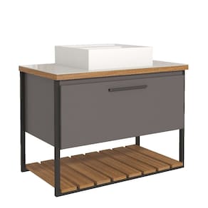 1 Porta basculante com abertura com pistão à gás Prateleira formato ripado Puxadores em ABS Estrutura MDF e metalon Lvatório em mármore sintético