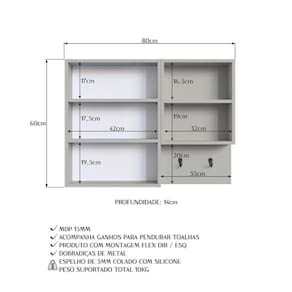 Transforme o seu banheiro em um ambiente elegante, moderno e funcional com a nossa espelheira com nicho aberto. Esta peça versátil oferece tudo o que você precisa para uma renovação prática e sofisticada. Nicho aberto para facilitar o acesso aos itens do dia a dia, suporte para toalhas, proporcionando organização e conveniência. Montagem flexível (direita/esquerda), adaptando-se perfeitamente ao seu espaço. Porta com espelho de alta qualidade, ideal para conferir aquele toque de estilo. Prateleiras internas espaçosas, garantindo que todos os seus pertences estejam bem acomodados. Disponível em cores modernas, esta espelheira une requinte, praticidade e charme em um único produto. Atualize o visual do seu banheiro com esta solução que equilibra beleza e funcionalidade. Este móvel chegará em sua casa separado em 01 Volume.