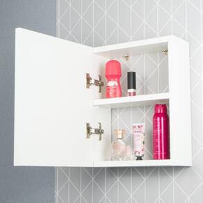 Obs.: Este anuncio inclui somente o armário com espelho, todos os itens de decoração das fotos não estão inclusos. RBN: Casa/Móveis/Móveis para Banheiro/Armários e Gabinetes | Conteúdo da Embalagem: 1 Armário para Banheiro | Produto: Armário Para Banheiro | Tipo de Instalação: Fácil | Estado de Origem: PR | Material: Madeira | Garantia: 3 meses contra defeitos de fabricação. | Instruções/Cuidados: Recomenda-se a limpeza com pano úmido. Não utilizar produtos abrasivos ou químicos. | Fabricante: Mercado das Prateleiras | Produto Precisa de Montagem?: Sim, a montagem é simples mas sugerimos a contratação do nosso serviço de montagem (para os CEPs em que o serviço está disponível) ou de algum profissional experiente de sua preferência | Complexidade de Montagem: Baixa: pode ser montado por uma pessoa leiga | Cor: Branco | Tonalidade: Branco | Largura: 26.5 | Altura: 34 | Comprimento: 11.5 | Peso do Produto: 3.5 | Largura do Produto com Embalagem: 26.5 | Altura do Produto com Embalagem: 34 | Comprimento Produto com Embalagem: 11.5 | Peso do Produto com Embalagem: 3.5 | Descrição do Tamanho: Largura: 26,5cm x Comprimento: 11,5cm x Altura: 34cm | Precisa de baterias ou pilhas: Não | Regulamentações aplicáveis a produtos perigosos: Não se aplica | Código de certificação: Não se aplica