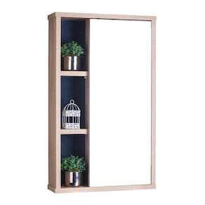 Armário com Espelho para Banheiros Modelo Milano na cor Carvalho Treviso (Madeira Clara) com Azul Marinho, é a opção perfeita para deixar o seu banheiro com muito mais estilo e praticidade.