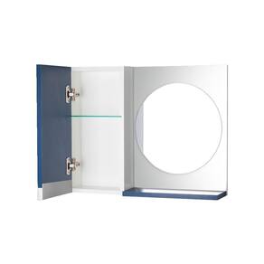 Armário para Banheiro com Espelho Redondo Azul com Puxador de Metal. Já vem montado, pronto para colocar na parede. É só abrir a caixa e instalar em seu banheiro. Acompanha 2 parafusos com buchas para instalar na parede.
