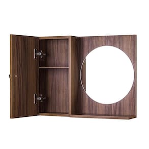 Armário para Banheiro com Espelho Redondo Madeira Escura. Já vem montado, pronto para colocar na parede. É só abrir a caixa e instalar em seu banheiro. Acompanha 2 parafusos com buchas para instalar na parede. Obs: a colocação dele na parede é por conta do cliente, mas é bem fácil de fazer, basta uma furadeira, régua e lápis para marcar o local de instalação. Basta colocar os dois parafusos na parede, depois encaixar o armário com espelho neles (tem 2 suportes metálicos atrás do armário, para encaixar nos parafusos). Armário para Banheiro com Espelho na cor Madeira Escura é ideal para organizar vários itens. Possui prateleira interna em vidro, armário com porta e amplo espelho. É a escolha perfeita para seu banheiro. Material: MDP 15mm Cor: Nogal Malaga (cor de madeira escura) Altura total: 46cm Largura total: 58cm Profundidade total: 12,5cm Instalação: a montagem e instalação do produto na parede são por conta do cliente Limpeza e conservação: recomenda-se a limpeza com pano úmido, não utilizar produtos abrasivos ou químicos Obs: Este anuncio inclui somente o armário com espelho, todos os itens de decoração das fotos não estão inclusos.