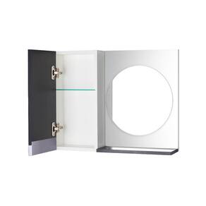 Armário para Banheiro com Espelho Redondo Preto e Branco com Puxador de Metal é a escolha perfeita para quem busca elegância, sofisticação e praticidade para seu banheiro.