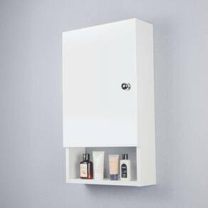 * Informações Técnicas: - Medidas Totais: 34cm de largura x 58cm de altura x 10cm de profundidade. - Compartimento Interno 1: 31cm de largura x 25,5cm de altura x 10cm de profundidade. - Compartimento Interno 2: 31cm de largura x 13,5cm de altura x 10cm de profundidade. - Nicho externo: 31cm de largura x 13cm de altura x 10cm de profundidade. - Peso do armário: 5,5kg.
