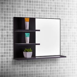 A espelheira possui 3 prateleiras externa para guardar e organizar itens de higiene pessoal e acessórios do seu banheiro, seu espelho é amplo, tornando-o um produto versátil.