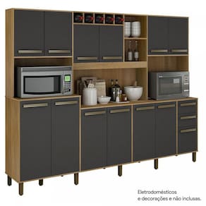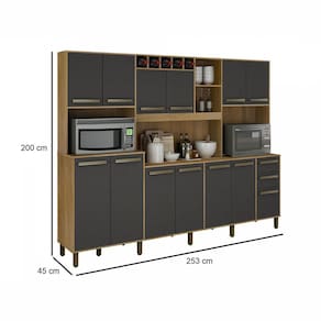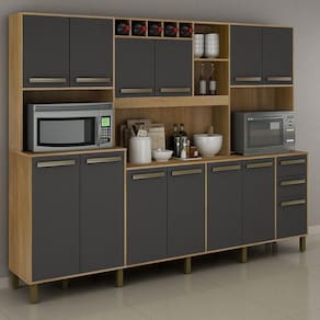 Espaço para organizar tudo o que você precisa e um design pensado para deixar o seu cômodo de chef mais bonito: essas vantagens você só encontra no Armário Ágata! Unindo compartimentos internos essenciais, ela recebe bem os utensílios, panelas, louças e embalagens de alimentos, além de acomodar também aqueles eletrodomésticos indispensáveis para um dia a dia mais prático. Enquanto isso, por fora, a estrutura tradicional, que se encaixa muito bem no ambiente, carrega uma coloração sóbria que é reforçada pelos puxadores discretos, perfeitos para quem quer acrescentar charme à decoração sem deixar de lado a elegância de uma peça versátil. Daí é só comprar os móveis e acessórios que vão complementar essa parte importante da casa e pronto! Já pode curtir ótimas refeições com a família ;) Acabamento: Pintura UV Acabamento da Gaveta: Pintura Acabamento da Porta: Pintura Acabamento dos Pés: Pintura Altura: 200 cm Altura dos Pés: 15 cm Ambiente Principal: Cozinha Complexidade da Montagem: Média: pode ser montado por mais de uma pessoa e/ou necessite de maior conhecimento para montagem Cr: Cinamomo/Grafite Cr do Produto: Cinamomo/Grafite Escala de Brilho: Fosco Escala de Brilho da Gaveta: Fosco Escala de Brilho da Porta: Fosco Gaveta com Chave: Não Itens Inclusos: 1 Armário, Manual de Montagem e Kit Ferragens Largura: 253 cm Manual de Montagem e Instalação: https://cdn2.madeiramadeira.com.br/atributo/valdemoveis/727873-manual-de-montagem-arm-rio-gata.pdf Material da Gaveta: MDP Material da Porta: MDP Material do Puxador da Gaveta: Poliestireno Material do Puxador da Porta: Poliestireno Material dos Pés: Polipropileno Material Principal: MDP Necessita Montagem: Sim Origem do Produto: Nacional Pés Reguláveis: Sim Peso: 84 kg Peso Máximo por Gaveta: 5 kg Peso Máximo por Prateleira: kg Possui Espelho: Não Possui Possui Gavetas: 03 Possui Pés: 11 Possui Portas: 12 Possui Prateleiras: Não Possui Rodízio: Não Profundidade: 45 cm Recomendações de Uso, Manutenção e Limpeza: Recomendamos que a limpeza seja feita apenas com pano umedecido. Sapatas Niveladoras: Sim Sistema de Montagem: Parafusos e Cavilhas Suporta Até (kg): 80 kg Tamanho: Tipo de Corrediça da Gaveta: Metálica Telescópica Tipo de Dobradiça/Corrediça da Porta: Metálica Tipo de Porta: Bater Tipo de Puxador da Gaveta: Externo Tipo de Puxador da Porta: Externo