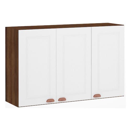 Desenvolvido com materiais de altíssima qualidade, o Armário Safira para Cozinha 120 cm 3 Portas Luciane oferece excelente distribuição de espaço interno. Dobradiças Slowmotion com amortecedor incorporado para fechamento suave das portas e Puxadores tipo concha PS Cobre.