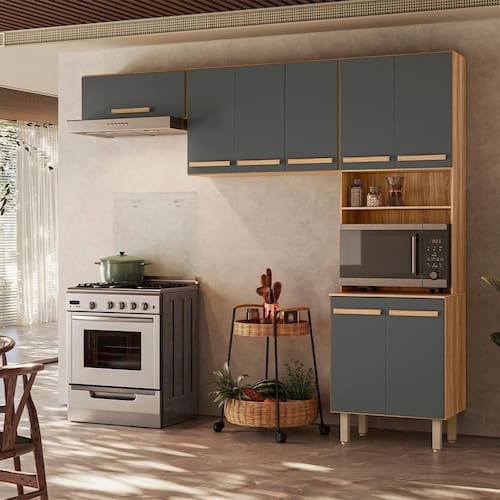 Requer montagem: Sim | Inclui manual de montagem: Sim | Material do corpo: MDP | Tipo de móvel de cozinha: Cozinha Completa Cor: Carvalho/