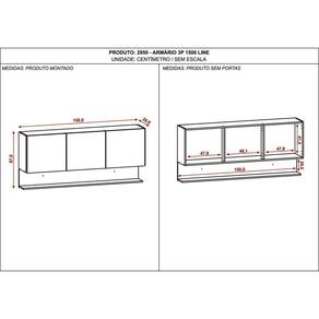 O Armário 3P 1500 Line é produzido em MDP em 15 mm, matéria prima que respeita o meio ambiente. Com 3 portas possuindo dobradiças 100% metálicas. Utiliza-se nas portas um sistema avançado de abertura, a porta sendo maior do que a estrutura do armário avançando sobre a base e tendo transpasse de 5 mm para que seja possível a abertura sem puxador. Possuindo um nicho inferior que garante toda sofisticação e minimalismo da sua cozinha, com aplicação de textura sensível ao toque e acabamento de pintura com secagem em luzes UV. Acabamento da Porta: Pintura Texturizada UV Acabamento da Prateleira: Pintura Texturizada UV Ambiente Principal: Cozinha Complexidade da Montagem: Média: pode ser montado por mais de uma pessoa e/ou necessite de maior conhecimento para montagem Cor: Gris/Freijó Cor do Produto: Gris/Freijó Cor Interna: Gris Escala de Brilho: Fosco Escala de Brilho da Porta: Fosco Escala de Brilho da Prateleira: Fosco Itens Inclusos: 1 Armário, Kit Ferragens e Manual de Montagem Manual de Montagem e Instalação: https://cdn2.madeiramadeira.com.br/atributo/kits-parana/1121657-2950-armArio-3p-1500-line.pdf Material da Dobradiça/Corrediça da Porta: Metálica Material da Porta: MDP Material da Prateleira: MDP Material Principal: MDP Necessita Montagem: Sim Origem do Produto: Nacional Peso: 24.6 Peso Máximo por Prateleira: 5 Possui Espelho: Não Possui Possui Pés: Não Possui Portas: 03 Possui Prateleiras: 01 Recomendações de Uso, Manutenção e Limpeza: Limpeza do produto somente com pano seco ou levemente umedecido, não utilizar abrasivos. Respeitar o limite de peso estabelecido no esquema de montagem. Evitar mover o produto com utensílios dentro. Sapatas Niveladoras: Não Sistema de Montagem: Cavilhas, pregos e parafusos Suporta Até (kg): 20 Tipo de Dobradiça/Corrediça da Porta: Simples Tipo de Porta: Bater Tipo de Puxador da Porta: Embutido