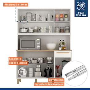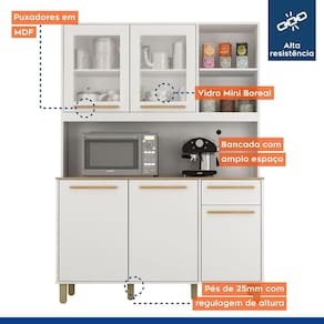 Espaço para organizar tudo o que você precisa e um design pensado para deixar o seu cômodo de chef mais bonito: essas vantagens você só encontra no armário Rubi! Unindo compartimentos internos essenciais, ela recebe bem os utensílios, panelas, louças e embalagens de alimentos, além de acomodar também aqueles eletrodomésticos indispensáveis para um dia a dia mais prático. Enquanto isso, por fora, a estrutura tradicional, que se encaixa muito bem no ambiente, carrega uma coloração sóbria que é reforçada pelos puxadores discretos, perfeitos para quem quer acrescentar charme à decoração sem deixar de lado a elegância de uma peça versátil. Daí é só comprar os móveis e acessórios que vão complementar essa parte importante da casa e pronto! Já pode curtir ótimas refeições com a família ;) Acabamento da Prateleira: Pintura Escala de Brilho da Prateleira: Fosco Acabamento da Gaveta: Pintura Escala de Brilho da Gaveta: Fosco Material do Puxador da Gaveta: MDF Acabamento da Porta: Pintura Escala de Brilho da Porta: Fosco Material do Puxador da Porta: MDF Acabamento dos Pés: Pintura Acompanha Tampo: Sim Altura dos Pés: 25 cm Ambiente Principal: Cozinha Complexidade da Montagem: Alta: deve ser montado por um montador especializado Cor: Branco Cor do Produto: Branco Escala de Brilho: Semi-Brilho Gaveta com Chave: Não Itens Inclusos: 1 Armário, Kit Ferragens e Manual de Montagem Manual de Montagem e Instalação: https://product-hub-prd.madeiramadeira.com.br/930955/documents/aef85c03-818b-4e4d-b5dd-a0b688df48d5anualdemontagemarmariorubi.pdf Material da Dobradiça/Corrediça da Porta: Metálica Material da Gaveta: MDP Material da Porta: MDP Material da Prateleira: MDP Material do Tampo: MDP Material dos Pés: Plástico Necessita Montagem: Sim O Balcão Acompanha Pia: Não Origem do Produto: Nacional Pés Reguláveis: Sim Peso: 62 kg Peso Máximo por Gaveta: 2 kg Peso Máximo por Prateleira: 5 kg Possui Pés: 06 Possui Portas: Sim Possui Prateleiras: Sim Possui recorte para Cooktop: Não Possui Rodízio: Não Recomendações de Uso, Manutenção e Limpeza: Limpar com pano macio e levemente umedecido. Não utilizar solventes a base e de inflamáveis. Não utilizar produtos abrasivos. Sapatas Niveladoras: Sim Sistema de Montagem: Parafusos. Suporta Até (kg): 72 kg Tamanho Indicado da Pia: . Tipo de Corrediça da Gaveta: Metálica Telescópica Tipo de Dobradiça da Porta: Simples Tipo de Puxador da Gaveta: Externo Tipo de Puxador da Porta: Externo