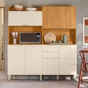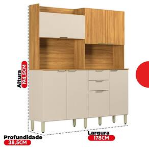 O Kit Cozinha Pitaya tem estrutura produzida em MDP e revestimento em pintura UV. Acabamento Touch que proporciona a naturalidade da madeira ao toque. Acabamento Prime TX que proporciona toque agradável e alta durabilidade ao móvel. Espaço para instalar forno microondas. Gavetas com corrediças metálicas, para mais estabilidade ao abrir e fechar. Portas com dobradiças metálicas, para mais estabilidade ao abrir e fechar. Porta basculante com pistão a gás para movimento suave e seguro. Puxadores em plástico ABS que são mais fáceis de higienizar. Pés com regulagem de altura para nivelar o móvel em relação ao piso. Acabamento da Prateleira: Pintura UV Escala de Brilho da Prateleira: Fosco Acabamento da Gaveta: Pintura UV Escala de Brilho da Gaveta: Brilhante Material do Puxador da Gaveta: Plástico Acabamento da Porta: Pintura UV Escala de Brilho da Porta: Brilhante Material do Puxador da Porta: ABS Acabamento dos Pés: Pintura Acompanha Rodapé Decorativo: Não Ambiente Principal: Cozinha Balcão Suporta Pia: Não codigo_ean: 7900288156778 Complexidade da Montagem: Alta: deve ser montado por um montador especializado Cor: Cinamon/Off-White Cor do Produto: Cinamon/Off-White Cor Flex: Não Cor Interna: Cinamon Escala de Brilho: Fosco Espessura do Material da Estrutura: 12 mm Gaveta com Chave: Não Informações Complementares: As cores do produto podem sofrer variações de tonalidade de acordo com as configurações do seu dispositivo. Itens Inclusos: 1 Kit Cozinha, Acessórios, Manual de Montagem Linha ou Coleção: Pitaya Manual de Especificação Técnica: https://product-hub-prd.madeiramadeira.com.br/296513929/documents/4346f725-74a4-4a95-a13c-10697c74572e2946294302817479374140119.pdf Manual de Montagem e Instalação: https://product-hub-prd.madeiramadeira.com.br/296513929/documents/2294d304-0664-4656-ba7e-b714c0e3b17f2946293302817479374052052.pdf Marca: Demóbile Material da Dobradiça/Corrediça da Porta: Metálica Material da Gaveta: MDP Material da Porta: MDP Material da Prateleira: MDP Material dos Pés: Polipropileno modular: Não Montagem Flex: Não Necessita Montagem: Sim O Balcão Acompanha Pia: Não Origem do Produto: Nacional Pés Reguláveis: Sim Peso: 66,1 kg Peso Máximo por Gaveta: 3 kg Peso Máximo por Prateleira: 5 kg Possui Espelho: Não Possui Possui Pés: 07 Possui Portas: Sim Possui Prateleiras: Sim Possui Rodízio: Não Possui Vidro: Não Produto Montado: Sim Recomendações de Uso, Manutenção e Limpeza: Efetuar a limpeza somente com pano macio, limpo e seco. Não utilizar produtos abrasivos ou químicos. Sapatas Niveladoras: Não Sistema de Montagem: Parafuso, Cavilhas e Pregos Suporta Até (kg): 53 kg Tipo de Corrediça da Gaveta: Simples Tipo de Dobradiça/Corrediça da Porta: Simples Tipo de Puxador da Gaveta: Externo Tipo de Puxador da Porta: Externo