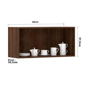 Características Corpo/Caixaria: MDP - Nogueira Dourado - FF. Frontais: MDP - Acabamentos em BP. Dobradiças: 35mm Slow motion. Puxadores: Alumínio Gola - Inox. Porta: 1 basculante. Pistão a gás de 80N. Montagem com Minifix, Parafusos e cavilhas.