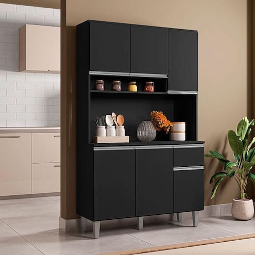 O armário pra sua cozinha você encontra aqui! Apresentamos a você esse lindo modelo desenvolvido pela AJL ideal para ambientes compactos que não possuem muito espaço, o Kit da linha Márcia conta com um design lindo e delicado na cor Preto Fosco proporcionando modernidade e um fino toque ao ambiente, ótimas divisões que irão lhe auxiliar na organização dos seus utensílios, fabricado com materiais de ótimas qualidades para maior resistência e durabilidade do móvel. Confira e aproveite!