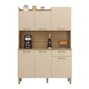 O Armário irá se tornar o charme de sua cozinha, seu design diferenciado dispõe de um nicho para decoração superior podendo ser utilizado para vasos, flores e outros. Tem a sua disposição de um grande espaço para Eltrodomésticos podendo acomodar um micro-ondas, sua matéria prima valoriza o meio ambiente sendo feita de madeira de reflorestamento. Com acabamento fosco e textura sensível ao toque em vários padrões mordernos.