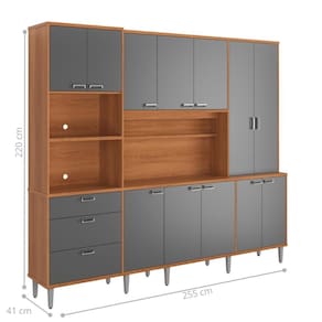 COMPRIMENTO DO PRODUTO (CM): 41 cm | QUANTIDADE DE PORTAS: 12 | PRODUTO: KIT COZINHA | COMPRIMENTO DO PRODUTO COM EMBALAGEM (CM): 261 | PESO DO PRODUTO (KG): 131 | MARCA: CASAH | ESTADO DE ORIGEM: SP | COR PREDOMINANTE: JEQUITIBA/GRAFITE | DESCRIÃ?Ã?O DO TAMANHO: 220X255X41 | INSTRUÃ?Ã-ES/CUIDADOS: Limpar com pano macio e seco, nÃo utilizar produtos abrasivos. | PESO DO PRODUTO COM EMBALAGEM (KG): 131 | LARGURA DO PRODUTO COM EMBALAGEM (CM): 44 | ALTURA DO PRODUTO COM EMBALAGEM (CM): 57 | QUANTIDADE DE CAIXAS NA EMBALAGEM: 5 | QUANTIDADE DE GAVETAS: 4 | GARANTIA DO FABRICANTE: 3 | PRODUTO PRECISA DE MONTAGEM?: Sim, a montagem à facil mas sugerimos a contrataÃÃo de um montador profissional para a montagem do produto. NÃo nos responsabilizamos por danos causados no ato da montagem. | CORES DO PRODUTO (FILTRO DE CORES): JEQUITIBA/GRAFITE | MATERIAL PRINCIPAL: MDP | ALTURA DO PRODUTO (CM): 220 cm | QUANTIDADE DE NICHOS: 3 | LARGURA DO PRODUTO (CM): 255 cm | REQUER MONTAGEM?: SIM | inclui manual de montagem?: sim