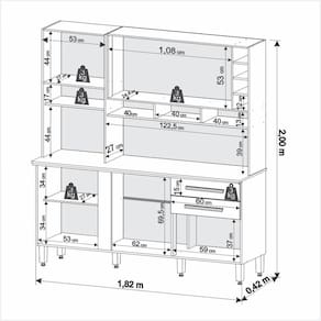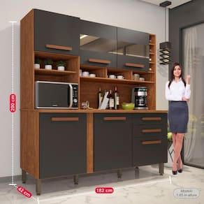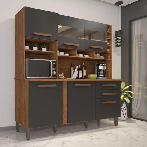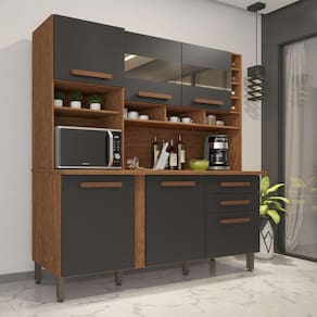 Preparar receitas especiais para a família e os amigos fica ainda melhor quando o espaço está organizado e todas as coisas estão em seus devidos lugares, né? Conte com a Cozinha Alexia para levar ainda mais praticidade à sua rotina. Espaçosa, ela oferece portas e gavetas para você acomodar potes de mantimentos, panelas, pratos, talheres, enfim, todos os itens que utiliza para cozinhar diariamente - além disso, também pode receber eletrodoméstico ou servir de apoio para picar alimentos. Ah, e como bom gosto é essencial para a sua casa, o visual sofisticado e atemporal é fácil de ser inserido na decoração e de ser combinado com outros móveis ;) Acabamento da Gaveta: Pintura Acabamento da Porta: Pintura Acabamento da Prateleira: Pintura Acabamento dos Pés: Pintura Acompanha Tampo: Sim Altura do Espelho: 20 cm Altura dos Pés: 17 Ambiente Principal: Cozinha Complexidade da Montagem: Média: pode ser montado por mais de uma pessoa e/ou necessite de maior conhecimento para montagem Cor: Cinamomo/Grafite Cor do Produto: Cinamomo/Grafite Cor Interna: Cinamomo Escala de Brilho: Semi-Brilho Escala de Brilho da Gaveta: Fosco Escala de Brilho da Porta: Semi-Brilho Escala de Brilho da Prateleira: Fosco Espessura do Espelho: 3 mm Formato do Espelho: Retangular Gaveta com Chave: Não Itens Inclusos: 1 Cozinha, Kit Ferragens e Manual de Montagem Largura do Espelho: 58 cm Manual de Montagem e Instalação: https://cdn2.madeiramadeira.com.br/atributo/imop/1247272-7908297303305-1.pdf Material da Dobradiça/Corrediça da Porta: Metálica Material da Gaveta: MDP Material da Porta: MDP Material da Prateleira: MDP Material do Fundo: MDP Material do Puxador da Gaveta: MDF Material do Puxador da Porta: MDF Material do Tampo: MDP Material dos Pés: PVC Material Principal: MDF/MDP Necessita Montagem: Sim O Balcão Acompanha Pia: Não Origem do Produto: Nacional Pés Reguláveis: Sim Peso: 79.5 Peso Máximo por Gaveta: 6 Peso Máximo por Prateleira: 8 Possui Espelho: 02 Espelhos com Tamanhos Iguais Possui Pés: 06 Possui Portas: 06 Possui Prateleiras: 07 Possui recorte para Cooktop: Não Possui Rodízio: Não Quantidade de Peças: 01 Recomendações de Uso, Manutenção e Limpeza: Limpeza com pano macio e levemente umedecido. Não utilizar solventes a base e de inflamáveis. Não utilizar produtos abrasivos. Sapatas Niveladoras: Não Sistema de Montagem: Parafusos e Cavilhas. Suporta Até (kg): 80 kg Tipo de Corrediça da Gaveta: Telescópica Tipo de Dobradiça da Porta: 35 mm Tipo de Dobradiça/Corrediça da Porta: 35 mm Tipo de Fixação do Espelho: Parafusos Tipo de Porta: Bater Tipo de Puxador da Gaveta: Externo Tipo de Puxador da Porta: Externo