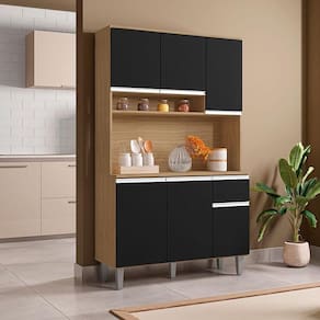 Armário para Cozinha Kit Márcia Amendoa Preto - AJL
