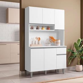 O armário pra sua cozinha você encontra aqui! Apresentamos a você esse lindo modelo desenvolvido pela AJL ideal para ambientes compactos que não possuem muito espaço, o Kit da linha Márcia conta com um design lindo e delicado na cor Branco Brilho proporcionando modernidade e um fino toque ao ambiente, ótimas divisões que irão lhe auxiliar na organização dos seus utensílios, fabricado com materiais de ótimas qualidades para maior resistência e durabilidade do móvel. Confira e aproveite!