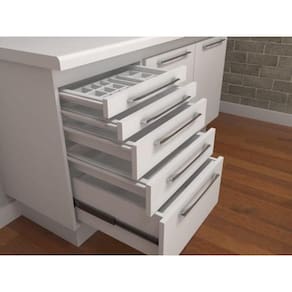 - Módulo gaveteiro composto por 5 (cinco) gavetas, com as seguintes alturas 6 cm, 6 cm, 12 cm, 12 cm e 24 cm