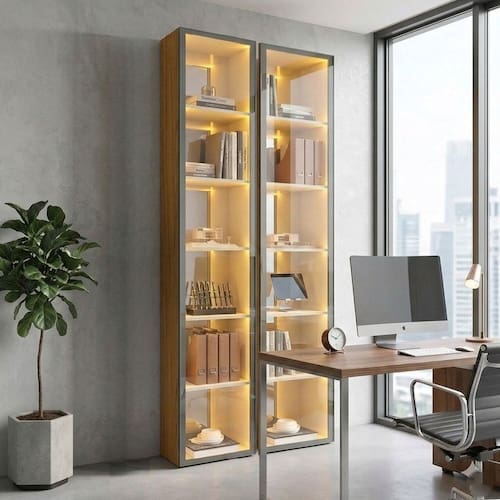 Transforme o seu ambiente de trabalho em um espaço de sofisticação e design com o Armário para Escritório Naturale. Este móvel de luxo foi projetado para profissionais que buscam o equilíbrio perfeito entre funcionalidade executiva e estética contemporânea. Não é apenas um local de armazenamento, mas uma peça central de destaque que exala organização e bom gosto. Altura do Conjunto: 217.6 cm Ambiente: null Ambiente Principal: Escritório codigo_ean: 7900288351418 Cor: Naturale Cor do Produto: Naturale Informação Complementar: 2x Cristaleira 1 Porta Reflecta com Fita Led com Espelho Luminare 100% Mdf Naturale Largura: 38 cm Altura: 217,6 cm Peso: 45 kg Profundidade: 23,5 cm Necessita Montagem: Sim