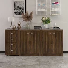 Armário para Escritório 158,5cm com 1 Gaveteiro e 4 Portas Nogal - Marrom
