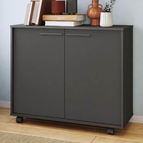O(a) Armário para Escritório 2 Portas 2 Prateleiras Preto Bmu 114 - Brv é produzido em MDP na escala de brilho Fosco, e possui um grau de dificuldade de montagem: Médio.