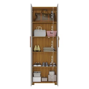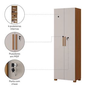 PUXADORES EM ABS, MULTIUSO COM CHAVE, QUATRO PRATELEIRAS BEM DISTRIBUIDAS, PÉS NA COR DO CORPO, PINTURA INTERNA Acabamento da Porta: Pintura UV Acabamento da Prateleira: Pintura UV Ambiente Principal: Quarto Complexidade da Montagem: Média: pode ser montado por mais de uma pessoa e/ou necessite de maior conhecimento para montagem Cor: Freijó Trend/Off White Cor do Produto: Freijo Trend/Off White Cor Interna: Freijo Escala de Brilho: Fosco Escala de Brilho da Porta: Brilhante Escala de Brilho da Prateleira: Fosco Itens Inclusos: 1 Armário Multiuso, Kit Ferragens e Manual de Montagem Linha ou Coleção: 2022 Manual de Montagem e Instalação: https://product-hub-prd.madeiramadeira.com.br/798827/documents/a8ccb818-419b-4dab-8b1f-3ac2be73b1731040165multiusont4020.pdf Material da Porta: MDP Material da Prateleira: MDP Material do Puxador da Porta: PVC Material dos Pés: PVC Material Principal: MDP Necessita Montagem: Sim Origem do Produto: Nacional Pés Reguláveis: Não Peso: 31.01 Peso Máximo por Prateleira: 5 Possui Espelho: Não Possui Pés: 04 Possui Portas: 02 Possui Prateleiras: 04 Recomendações de Uso, Manutenção e Limpeza: Para maior durabilidade, recomenda-se que a limpeza dos móveis seja feita da seguinte forma: Nas partes externas (portas, laterais e frente de gaveta) e internas, a limpeza deverá ser feita com pano limpo e levemente umedecido em água e sabão neutro. Em seguida, deverá ser passado um pano limpo e seco. Sapatas Niveladoras: Não Sistema de Montagem: Parafuso e mini fix Suporta Até (kg): 20 Tipo de Armário Multiuso: Armário Multiuso Tipo de Dobradiça/Corrediça da Porta: Aço Tipo de Puxador da Porta: Externo