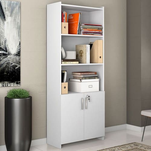 O(a) Armário para Escritório 2 Portas Diretor Branco New - Pnr Móveis é produzido em MDP na escala de brilho Fosco, e possui um grau de dificuldade de montagem: Médio.