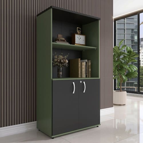 Seu design clean combina facilmente com diferentes mobílias, mantendo a harmonia da decoração. Ideal para o dia a dia de trabalho, é perfeito para deixar seu ambiente organizado, funcional e elegante. Acabamento da Porta: BP Acabamento da Prateleira: BP Acabamento dos Pés: Polipropileno Ambiente Principal: Escritório Armário Suspenso: Não codigo_ean: 7900288159397 Complexidade da Montagem: Média: pode ser montado por mais de uma pessoa e/ou necessite de maior conhecimento para montagem Cor: Salvia/Preto Cor do Produto: Salvia/Preto Cor Interna: Salvia/Preto Escala de Brilho: Semi-Fosco Escala de Brilho da Porta: Semi-Fosco Escala de Brilho da Prateleira: Semi-Fosco Formato do Armário: Retangular Itens Inclusos: 1 Armário Manual de Montagem e Instalação: https://product-hub-prd.madeiramadeira.com.br/746274272/documents/659a60d2-39c2-4c80-91a1-cfe8edfc39b707711732542775970592140091.pdf Marca: Pandin Móveis Material da Porta: MDP Material da Prateleira: MDP Material dos Pés: Polipropileno Material Principal: MDP Necessita Montagem: Sim Orientação do Armário: Vertical Origem do Produto: Nacional Peso: 38,2 kg Peso Máximo por Prateleira: 15 kg Possui Espelho: Não Possui Mesa Retrátil: Não Possui Pés: 04 Possui Portas: 02 Possui Prateleiras: 03 Quantidade de Armários: 1 Recomendações de Uso, Manutenção e Limpeza: Limpeza feita com um pano levemente umedecido e um pano seco. Sapatas Niveladoras: Sim Sistema de Montagem: Parafuso Suporta Até (kg): 30 kg Tamanho do Armário: Alto (Acima de 150cm) Tipo de Armário: Semi-Fechado Tipo de Dobradiça/Corrediça da Porta: Alumínio Tipo de Puxador da Porta: Externo Marca: Não Informado