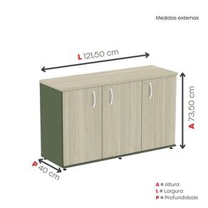 Seu design clean combina facilmente com diferentes mobílias, mantendo a harmonia da decoração. Ideal para o dia a dia de trabalho, é perfeito para deixar seu ambiente organizado, funcional e elegante. Acabamento da Porta: BP Acabamento da Prateleira: BP Ambiente Principal: Escritório Armário Suspenso: Não codigo_ean: 7900288197160 Complexidade da Montagem: Média: pode ser montado por mais de uma pessoa e/ou necessite de maior conhecimento para montagem Cor: Salvia/Castanheira Cor do Produto: Sálvia/Castanheira Cor Interna: Sálvia/Preto Escala de Brilho: Semi-Fosco Escala de Brilho da Porta: Semi-Fosco Escala de Brilho da Prateleira: Semi-Fosco Formato do Armário: Retangular Itens Inclusos: 1 Armário, Kit Ferragens e Manual de Montagem Linha ou Coleção: Credenza Manual de Montagem e Instalação: https://product-hub-prd.madeiramadeira.com.br/444270102/documents/c0c6ddb0-1ec0-48ae-aa45-7c416c2fa7542723979387017411828145805.pdf Marca: Pandin Móveis Material da Porta: MDP Material da Prateleira: MDP Material dos Pés: Polipropileno Material Principal: MDP Necessita Montagem: Sim Orientação do Armário: Horizontal Origem do Produto: Nacional Peso: 38,882 kg Peso Máximo por Prateleira: 15 kg Possui Espelho: Não Possui Mesa Retrátil: Não Possui Pés: 06 Possui Portas: 03 Possui Prateleiras: 03 Quantidade de Armários: 1 Recomendações de Uso, Manutenção e Limpeza: Limpeza feita com um pano levemente umedecido e um pano seco. Sapatas Niveladoras: Sim Sistema de Montagem: Parafuso Suporta Até (kg): 30 kg Tamanho do Armário: Baixo (Até 90cm) Tipo de Armário: Totalmente Fechado Tipo de Dobradiça/Corrediça da Porta: Alumínio Tipo de Puxador da Porta: Externo Marca: Não Informado