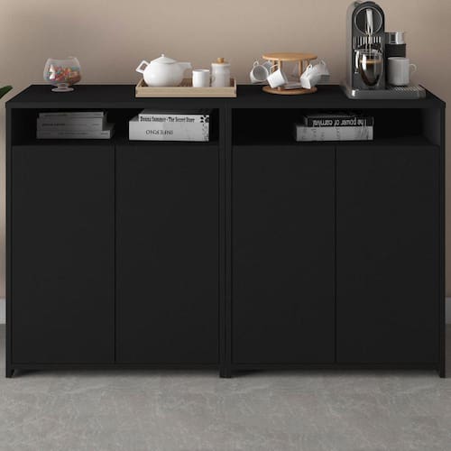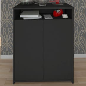O(a) Armário para Escritório 4 Portas Preto 5676 - Artany Móveis é produzido em MDP na escala de brilho Fosco, e possui um grau de dificuldade de montagem: Médio.