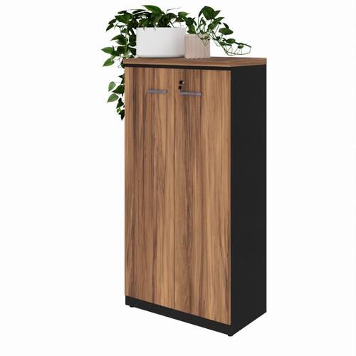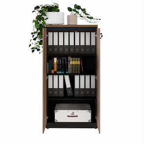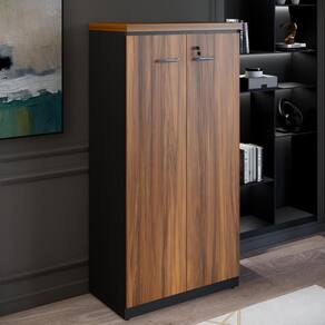 Armário para Escritório Alto 2 Portas com Chave 3 Prateleiras Yaris YAR8016 Office Marrom/Preto