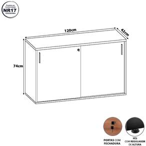 Altura: 74cm Acabamento da Porta: BP Acabamento da Prateleira: BP Ambiente Principal: Escritório Armário Suspenso: Não codigo_ean: 7900288268839 Complexidade da Montagem: Baixa: pode ser montado por uma pessoa sozinha Cor: Carvalho Treviso / Branco Cor do Produto: Carvalho Treviso / Branco Cor Flex: Não Cor Interna: Branco Escala de Brilho: Fosco Escala de Brilho da Porta: Fosco Escala de Brilho da Prateleira: Fosco Espessura do Tampo: 25 mm Formato do Armário: Retangular Itens Inclusos: 1 Armário, Kit Ferragens e Manual de Montagem. Linha ou Coleção: Corporate Manual de Montagem e Instalação: https://product-hub-prd.madeiramadeira.com.br/767901971/documents/2f0fbc41-8801-4a8f-acc3-5e97353734ab3284110659517610629739611.pdf Marca: F5 Office Material da Porta: MDP Material da Prateleira: MDP Material do Puxador da Porta: Alumínio Material Principal: MDP Montagem Flex: Não, o produto só pode ser montado conforme imagem. Necessita Montagem: Sim Orientação do Armário: Horizontal Origem do Produto: Nacional Peso: 20 kg Peso Máximo por Prateleira: 10 kg Possui Espelho: Não Possui Mesa Retrátil: Não Possui Nicho: Não Possui Pés: Não Possui Portas: 02 Possui Prateleiras: 01 Quantidade de Armários: 1 Recomendações de Uso, Manutenção e Limpeza: Para uma limpeza mais efetiva, utilizar apenas pano macio umedecido e sabão neutro. Não utilizar produtos abrasivos. Sapatas Niveladoras: Sim Sistema de Montagem: Parafusos e buchas metálicas. Suporta Até (kg): 20 kg Tamanho do Armário: Baixo (Até 90cm) Tipo de Armário: Totalmente Fechado Tipo de Dobradiça/Corrediça da Porta: Metálica Tipo de Puxador da Porta: Externo Marca: Não Informado