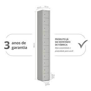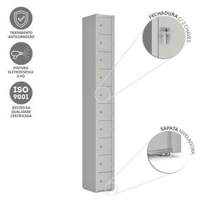 Nosso locker de aço com 10 portas sobrepostas é ideal para guardar celulares e pequenos objetos pessoais em empresas, seja indústria ou comércio, além de escolas, academias e clubes. Cada compartimento possui fechadura individual e duas chaves.