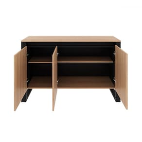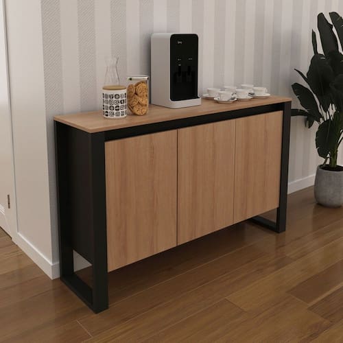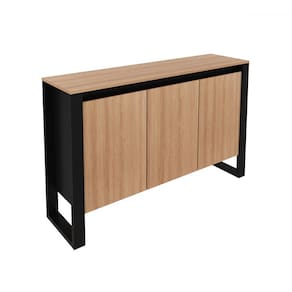 O(a) Armário para Escritório Horizontal 3 Portas Me4147 Amêndoa/Preto - Tecno Mobili é produzido em MDP na escala de brilho Fosco, e possui um grau de dificuldade de montagem: Médio.