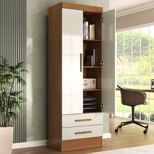 O(a) Armário para Escritório Modulare 2 Portas 2 Gavetas Cinamomo/Off White - Loja é produzido em MDP na escala de brilho Fosco, e possui um grau de dificuldade de montagem: Médio.