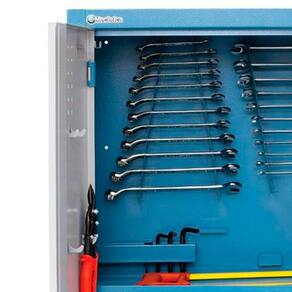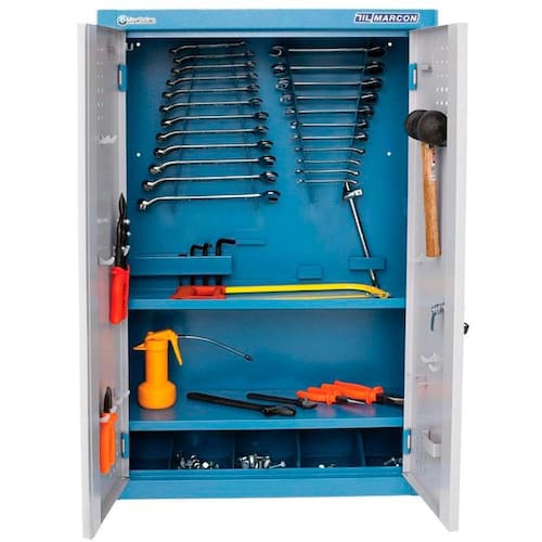 Os armários da Marcon foram projetados com o mais alto nível de tecnologia, com design moderno, compacto e espaçoso por dentro. É a melhor opção para quem procura custo e benefício.Estrutura em chapa de açoChapa perfuradaDivisórias internas para ferramentasPrateleiras2 portasFechamento com chaveCantos ArredondadosPintura epóxi azul e cinza padrão MarconDimensões: 650 x 230 x 980 mm (C x L x A)Obs: Ferramentas não inclusas. Foto meramente ilustrativa.