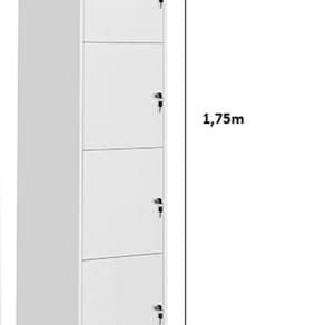 Portas: Quatro portas verticais, cada uma equipada com fechadura individual e dobradiças metálicas resistentes.