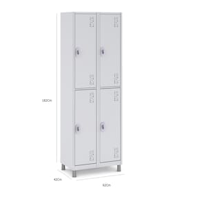 O Armário Roupeiro de Aço 04 Portas Vestiário Academia Guarda-Volumes com trinco para cadeados é perfeito para alojamentos, escritórios, almoxarifados, laboratórios, hospitais, farmácias, depósitos, academias, supermercados, vestiários, e diversos outros ambientes.