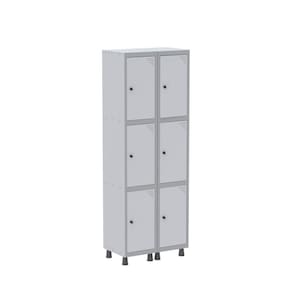 Armário Roupeiro 6 Portas Aço GRP 502/6 Pandin Móveis Cinza/Branco