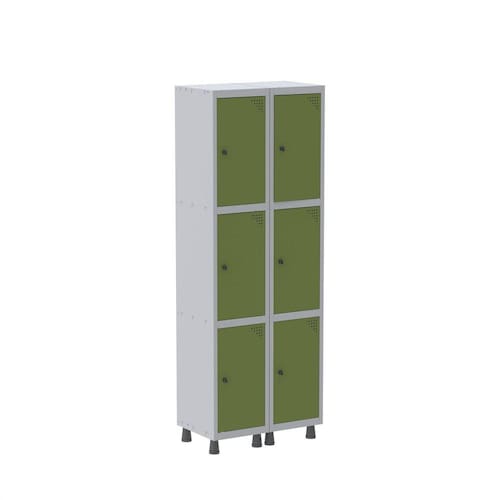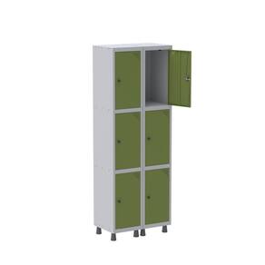 Armário Roupeiro 6 Portas Aço GRP 502/6 Pandin Móveis Cinza/Verde Miró